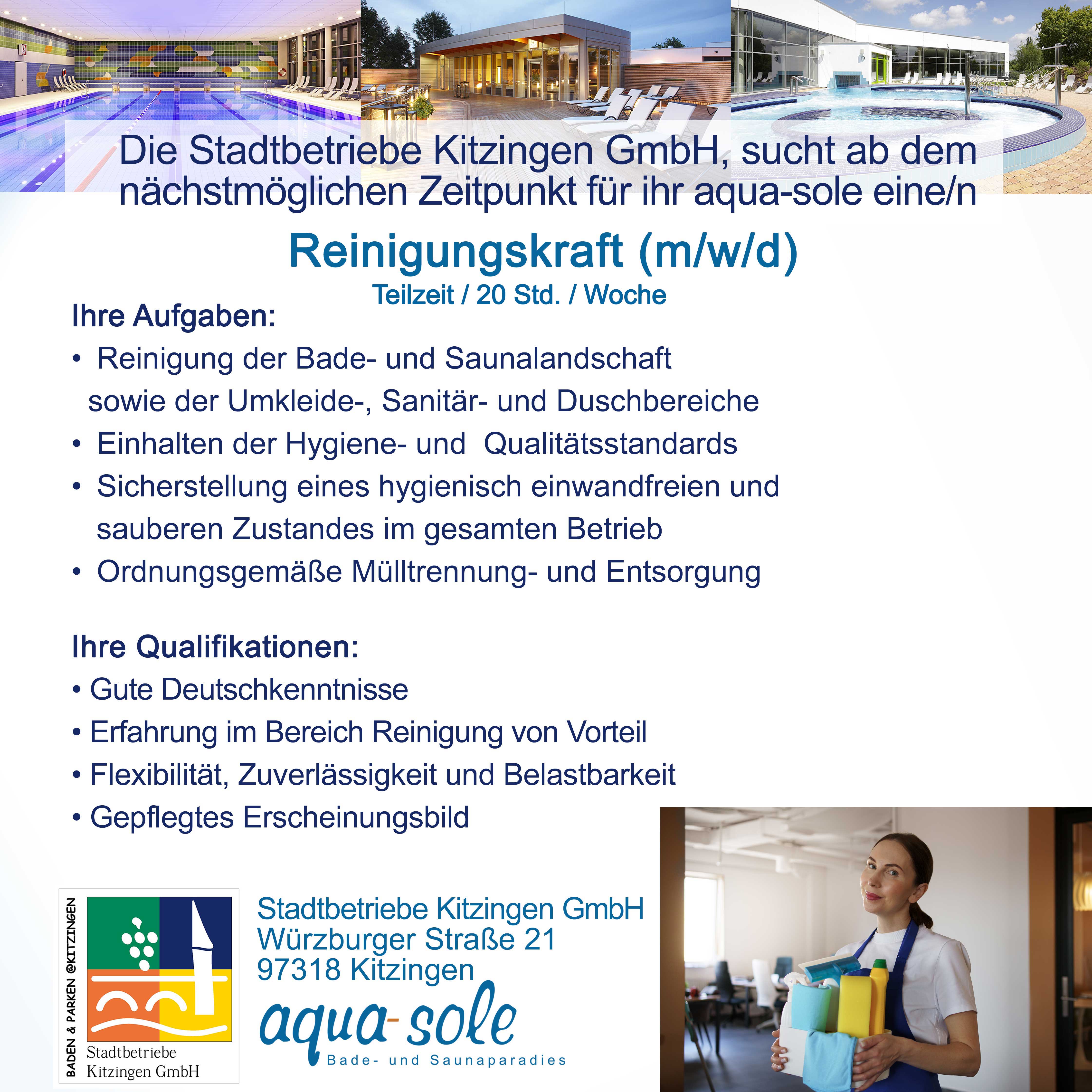 Die Große Kreisstadt Kitzingen (rd. 23.000 Einwohner) ist Mitglied der Metropolregion Nürnberg, liegt inmitten des fränkischen Weinlandes und in unmittelbarer Nähe zur Universitätsstadt Würzburg. Vor Ort gibt es alle Schularten, sämtliche Dienstleistungen fürs tägliche Leben und ein reichhaltiges kulturelles Angebot.